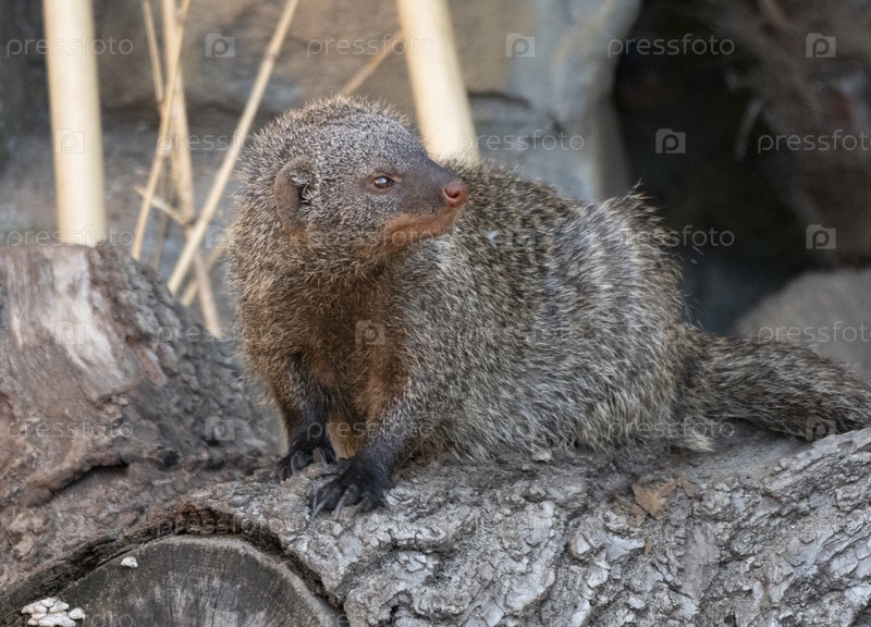 Полосатый мангуст (mungos mungo) отдыхает на солнце