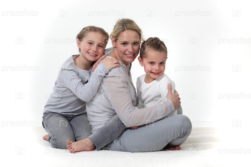 Женщина обнимает своих детей