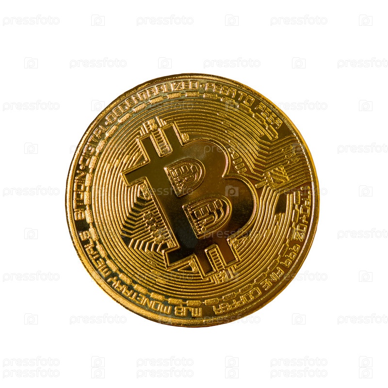 Биткойн монета, изолированные на белом фоне. Криптовалюта БТЦ. Технология блокчейн. Крупный план