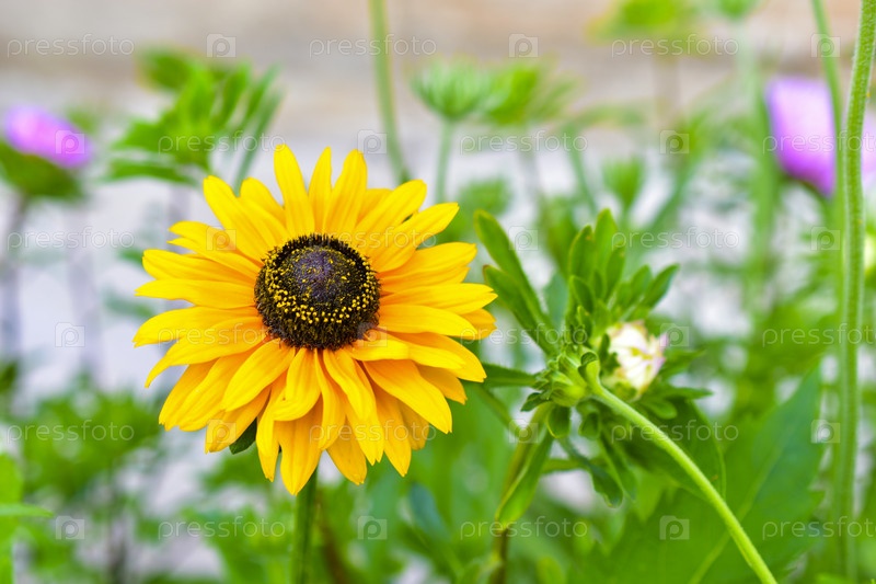 Желтые яркие цветки рудбекии желтой многолетней ромашки