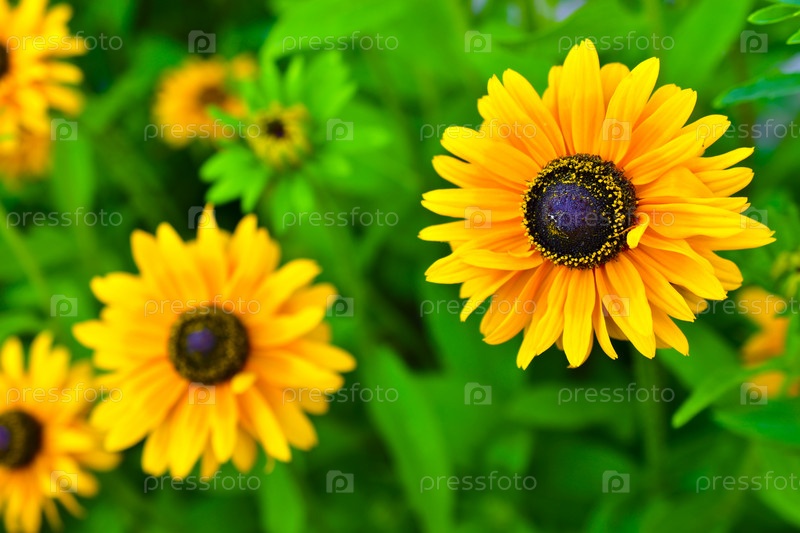 Желтые яркие цветки рудбекии желтой многолетней ромашки