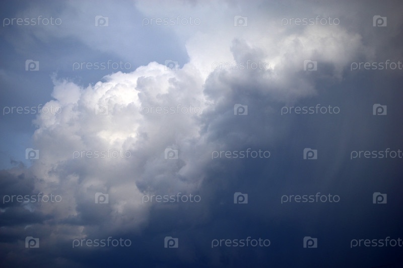 Предгрозовые кучевые голубые облака в вечернем небе