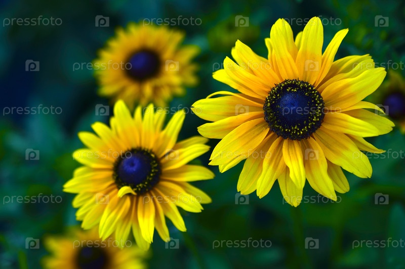 Желтые цветы рудбекии желтой ромашки в саду