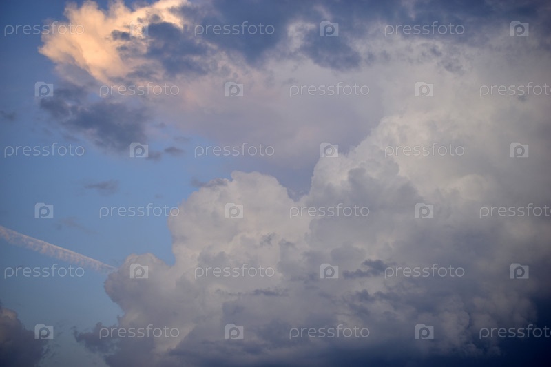 Предгрозовые кучевые голубые облака в вечернем небе