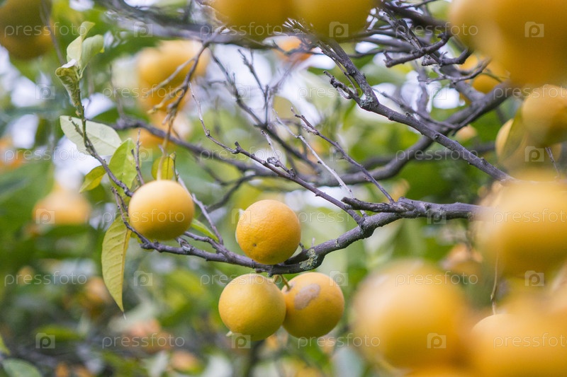 Италия. Казерта. Апельсиновые деревья с фруктами. Уборка апельсинов. Италия. Caserta. Orange trees with fruits. Harvest of oranges