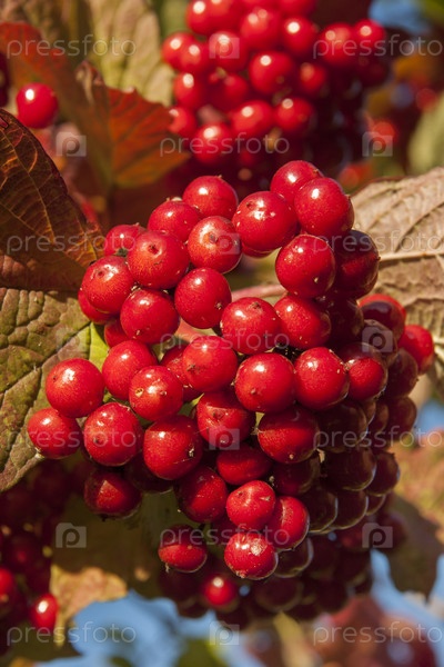 Россия. Санкт-Петербург. гроздья ягод на ветке калина. Россия. Санкт-Петербург. букеты ягод на ветви дерева вибурнума
