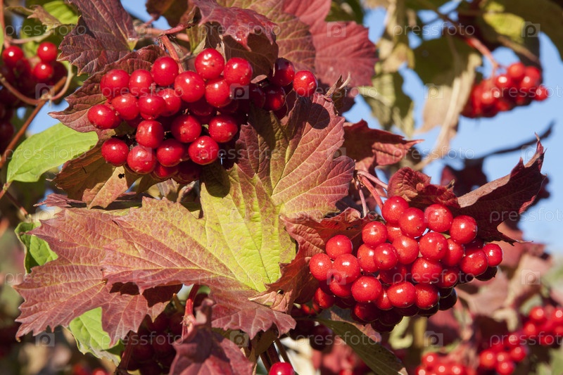 Россия. Санкт-Петербург. гроздья ягод на ветке калина. Россия. Санкт-Петербург. букеты ягод на ветви дерева вибурнума