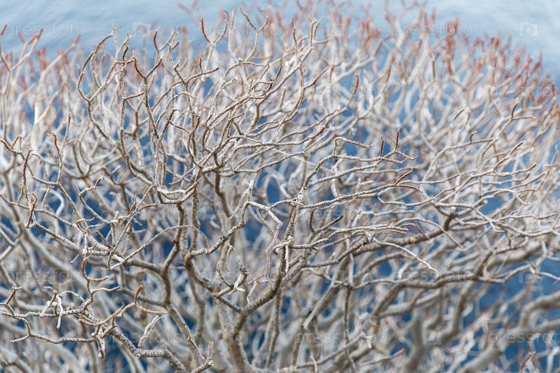 Черногория. Петровац. Фактурная ветвь куста на берегу моря. Черногория. Петровац. Текстурированные ветви куста на морском побережье