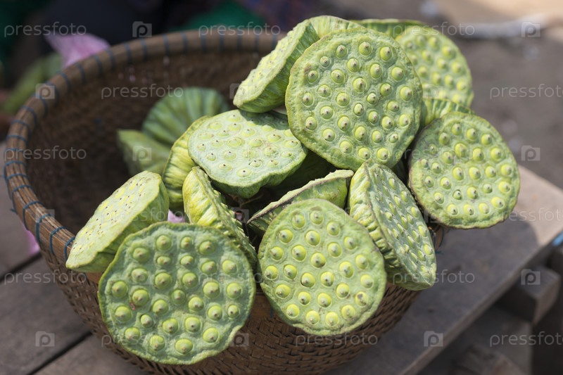 Камбоджа. Пномпень. Плоды цветущего лотоса. Камбоджа. Пномпень. Фрукты выцветшего растения