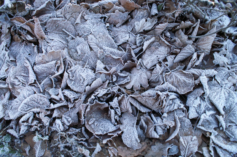 Россия. Санкт-Петербург. Старые осенние листья под слоем морозной иньки. Россия. Санкт-Петербург. Падшее осеннее листопадение под слоем морозного замораживания