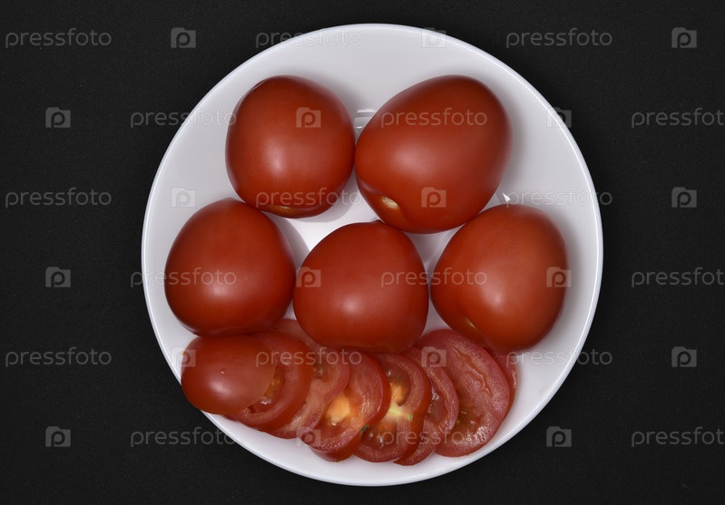 Красные помидоры на белой тарелке. Нарезанные помидоры. Овощи на тарелке