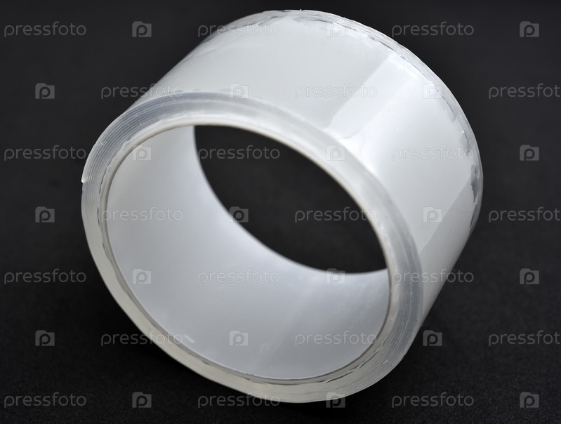Скотч на черном фоне. Рулоны прозрачной ленты. Скотч на черном фоне