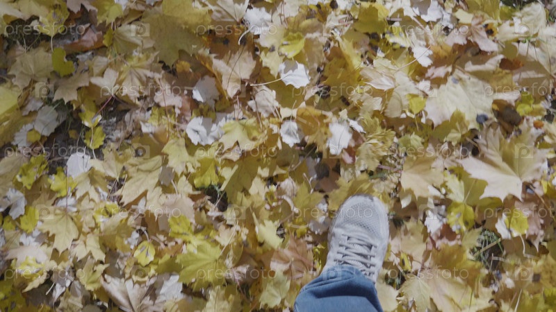 Человек в обуви гуляет в парке осенняя концепция прогулки по городу на открытом воздухе