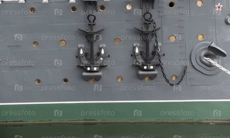 СТ. САНКТ-ПЕТЕРБУРГ, РОССИЯ, 10 мая 2018 г.: Крейсер "Аврора". Корабль пришвартован у Петроградской набережной и является музеем. На носу установлен военно-морской флаг России