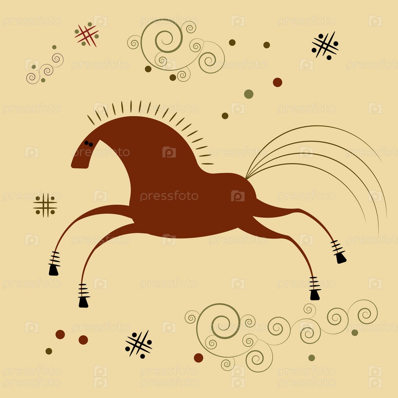 Конь и орнамент в стиле мезенской росписи