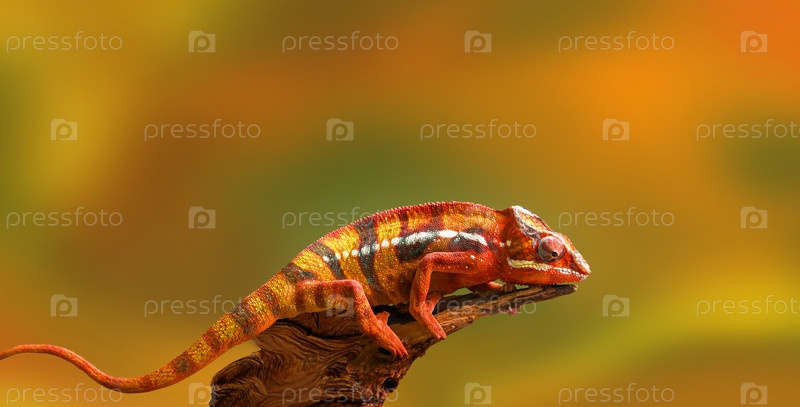 Красивый хамелеон на дереве