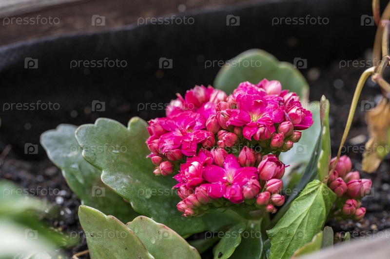 Розовые цветы седума крупноцветкового в горшке