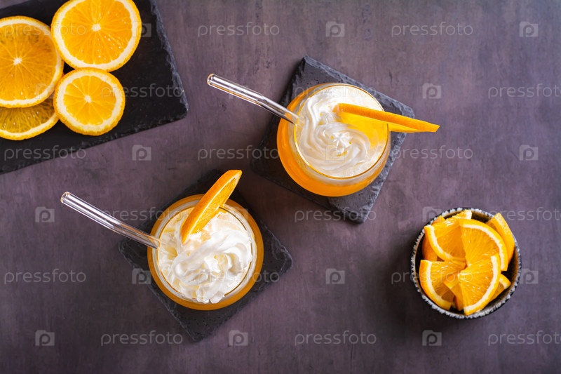 Свежий коктейль с апельсиновой газировкой в стаканах на столе