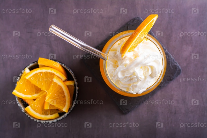 Крупный план свежего коктейля с апельсиновой газировкой в стаканах на столешнице