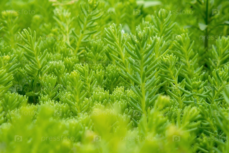 Цветочный фон, садовый почвенный очисток (Sedum repulsive или Sedum humifusum) с капельками росы