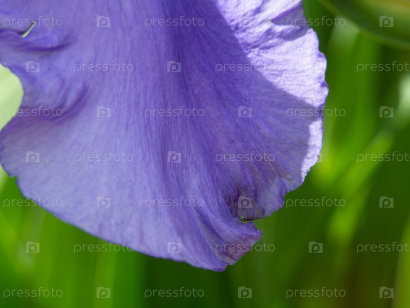 Макро фото голубого лепестка цветка на фоне зеленой травы