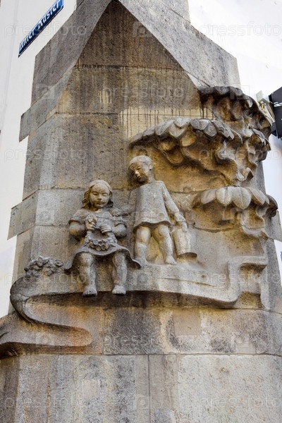 Угол здания с фреской с изображением детей