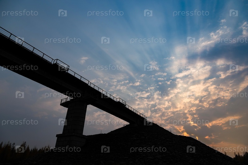 Лучи заката с силуэтом железнодорожного моста