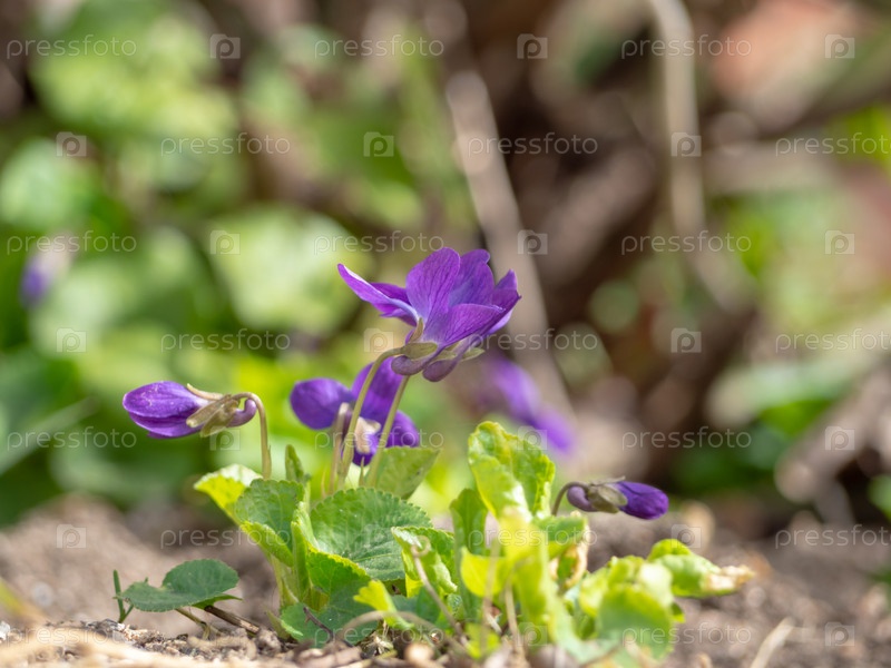 Нежные фиолетовые дикие фиолетовые цветы ранней весной на солнечном свете