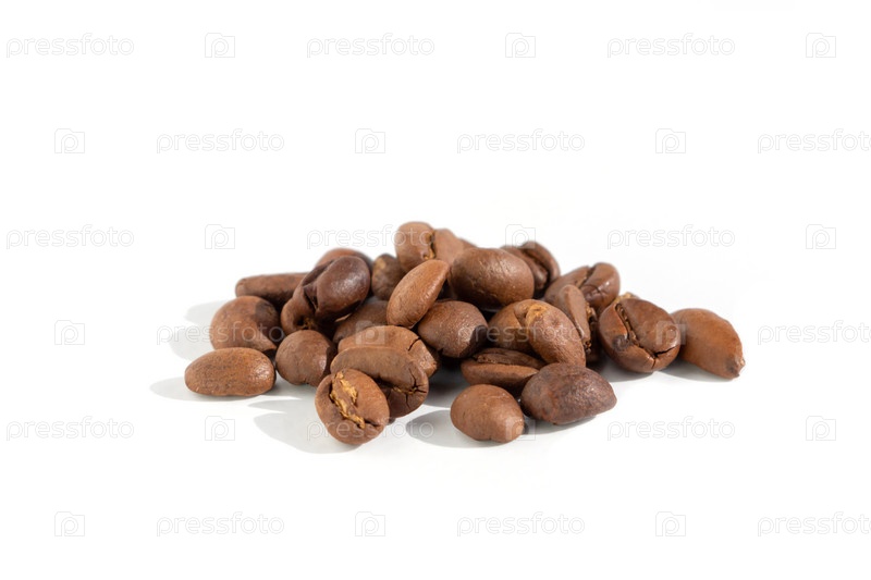 Крупный план жареных кофейных зерен на белом фоне
