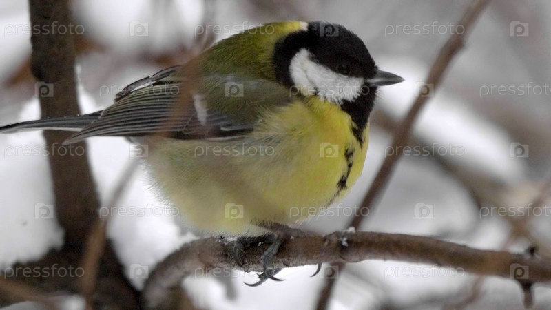 Подмосковные птицы, желтая овсянка на ветке дерева, Птицы Подмосковья, желтая овсянка на ветке дерева