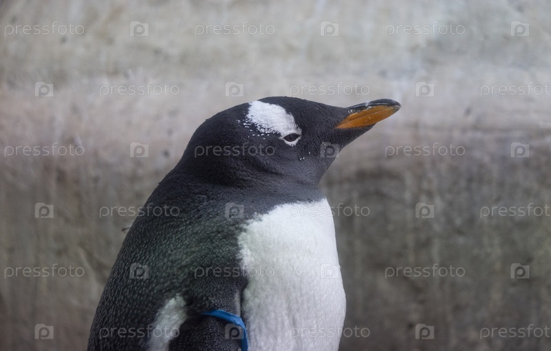 Красивый пингвин стоит боком на солнце, портрет