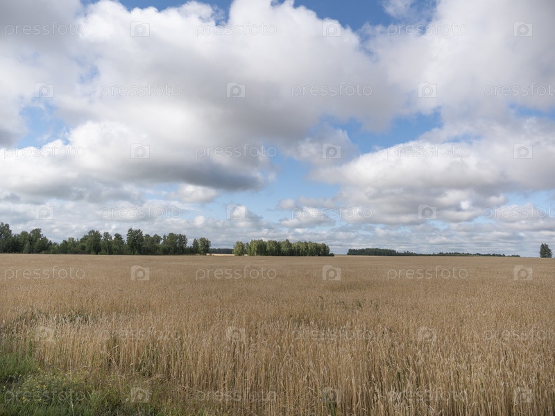 Желтое зерно, готовое к сбору урожая, растет на ферме