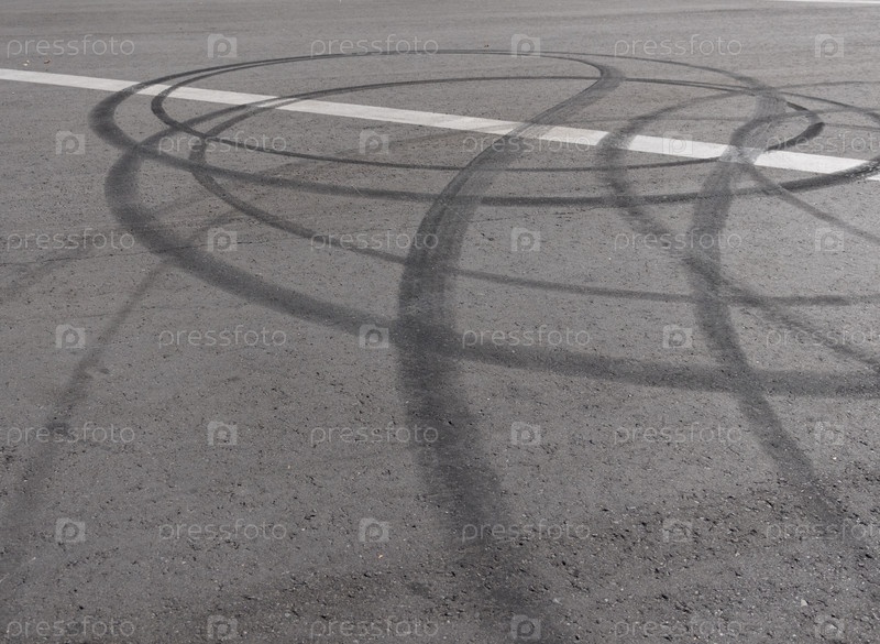 Черный след от резиновых покрышек на асфальте