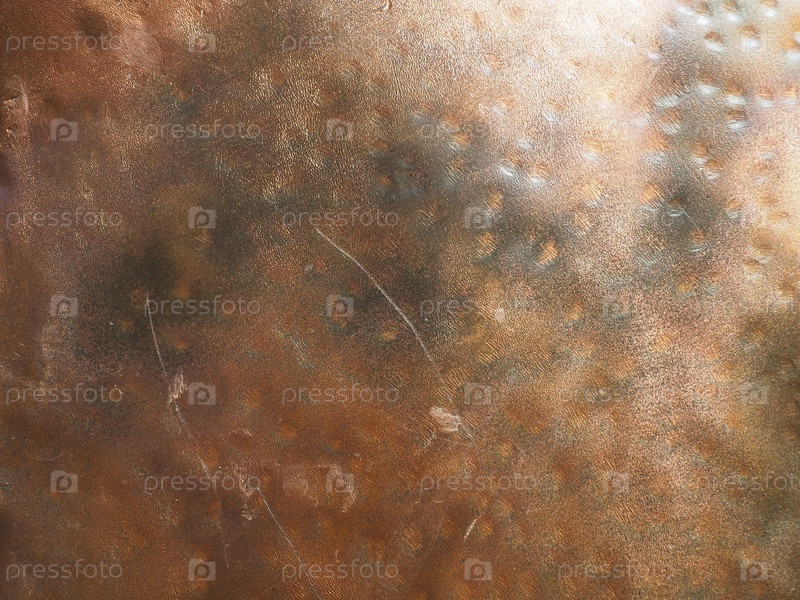 Металлическая фактурная пластина под бронзу. Бронзовая или медная полированная поверхность с вмятинами, царапинами и вмятинами. Текстура металла