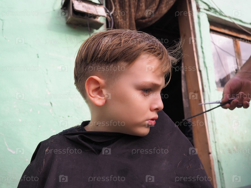 Белокурый мальчик 8 лет стригся ножницами. Услуги парикмахера на дому. Стрижка для ребенка со светлыми волосами