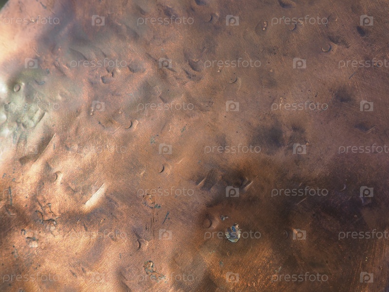 Металлическая фактурная пластина под бронзу. Бронзовая или медная полированная поверхность с вмятинами, царапинами и вмятинами. Текстура металла