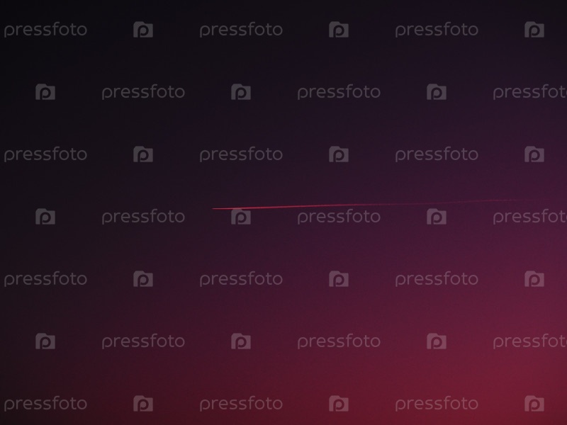 Самолет и след в малиново-бордовом небе. Абстрактный фон на тему космоса или аэро
