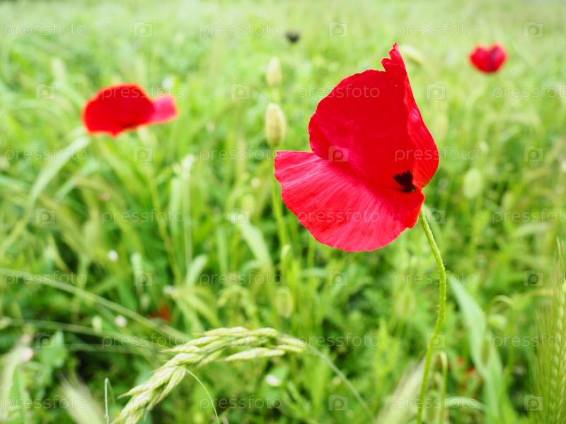 Папавер роэас мак, однолетнее травянистое растение, вид рода Papaver Poppy семейства Papaveraceae.Красные цветы в зеленой траве