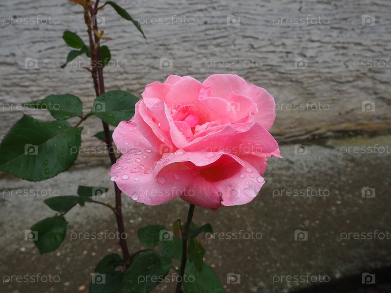 Цветущая романтическая свежая румяная роза. В саду цветут розовые и малиновые розы. Лепестки с каплями воды