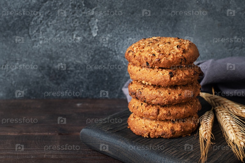 Домашнее печенье со злаками и семечками. Овсяные крекеры на деревянном фоне. Скопируйте пространство