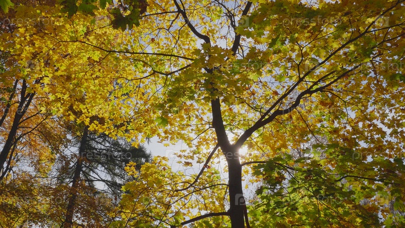Осенние листья падают в лес, природный ландшафт