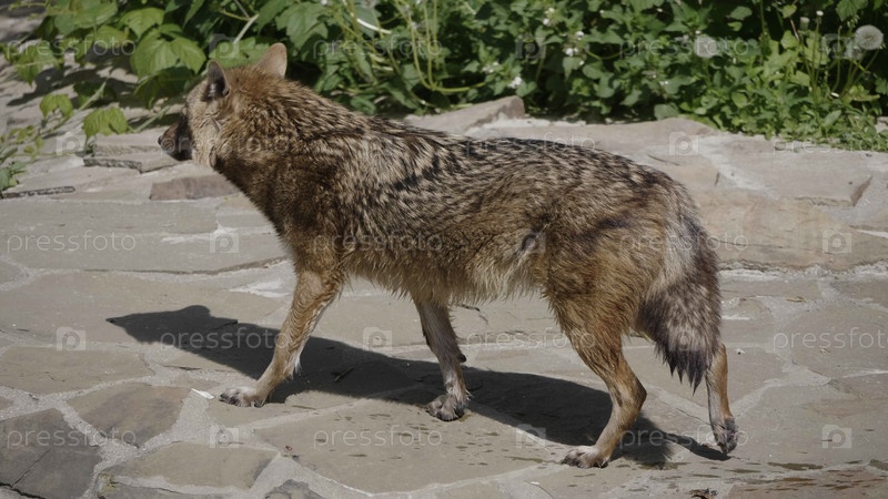 Золотой шакал в природе выслеживает добычу
