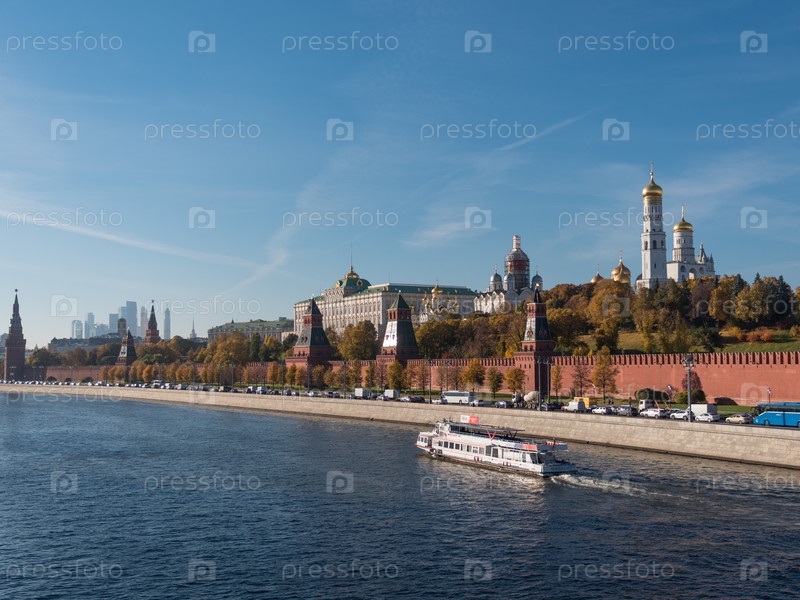 Солнечный летний день москва речной залив кремль панорама