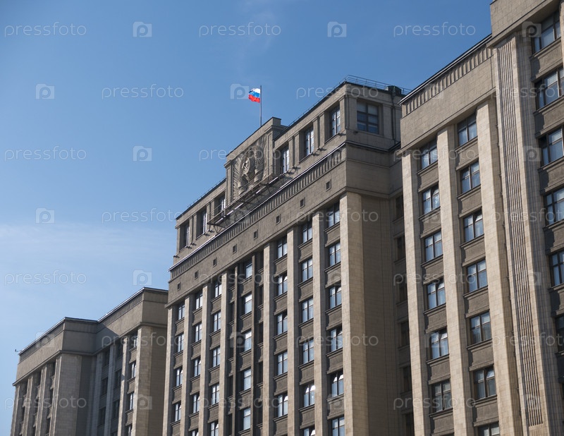 Фасад Государственной Думы, здание парламента Российской Федерации, достопримечательность в центре Москвы