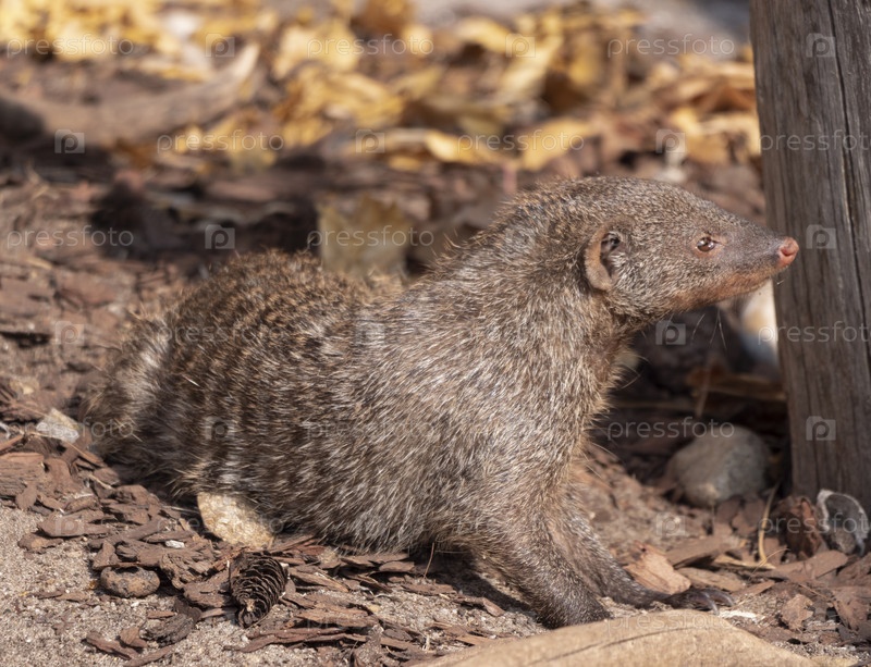 Полосатый мангуст (mungos mungo) отдыхает на солнце