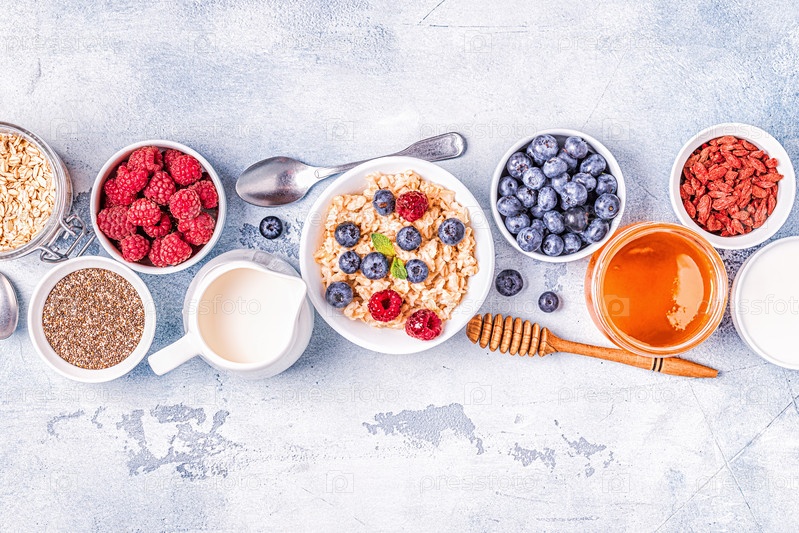 Завтрак, овсянка с ягодами
