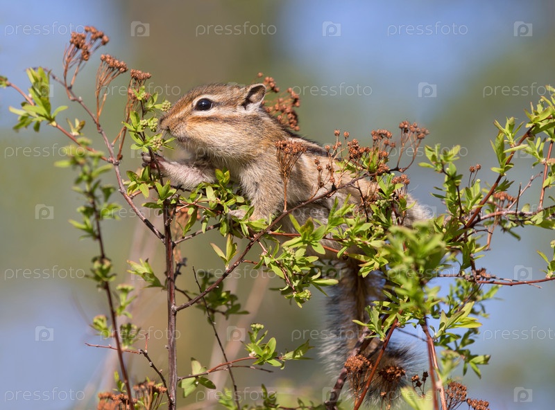 Бурундук на кусте крупным планом