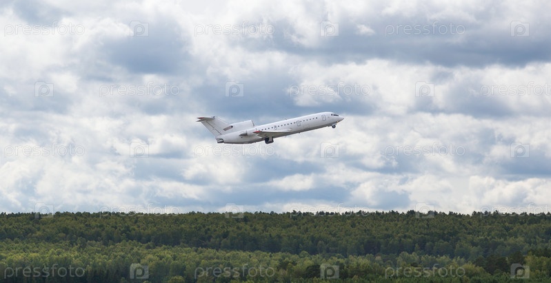 Белый самолет взлетает