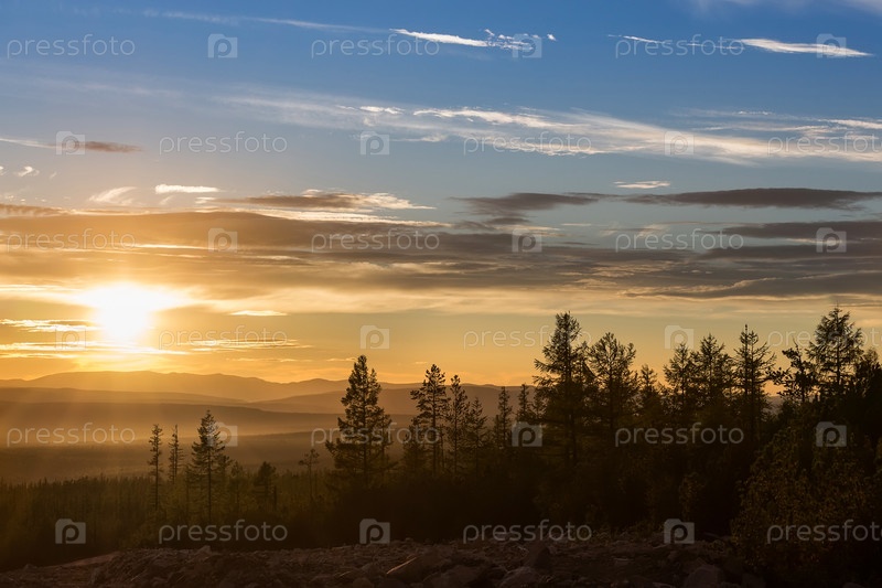 Закат в гористой местности