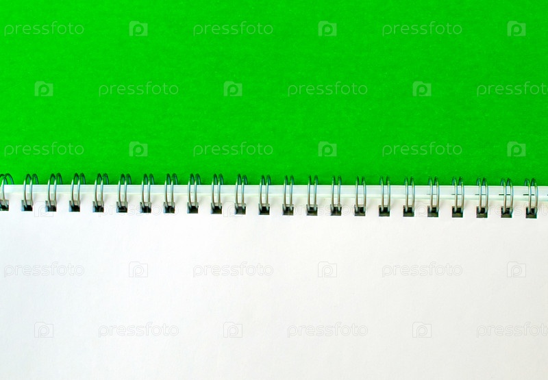 Белый блокнот с пружинкой на зеленом фоне